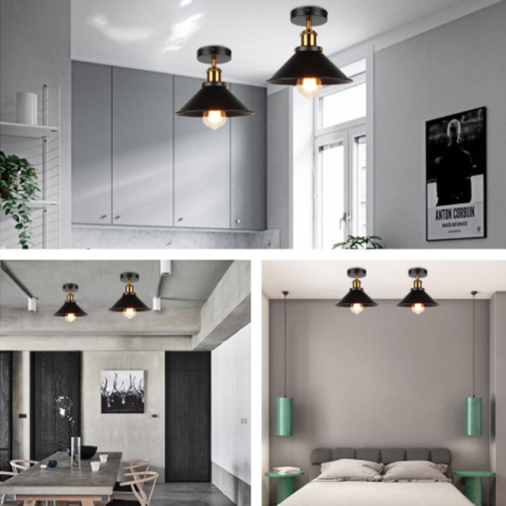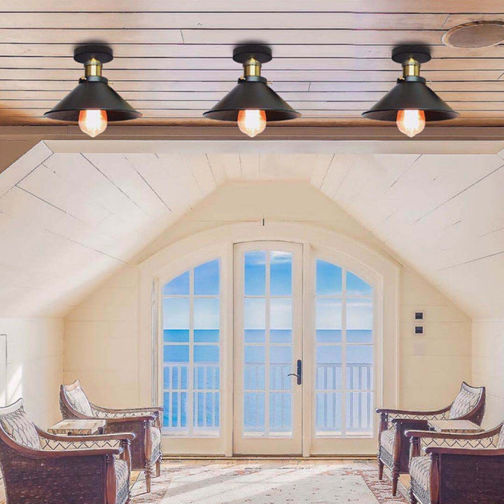 Vintage Industrial Ceiling Light – Black & Brass Fixture