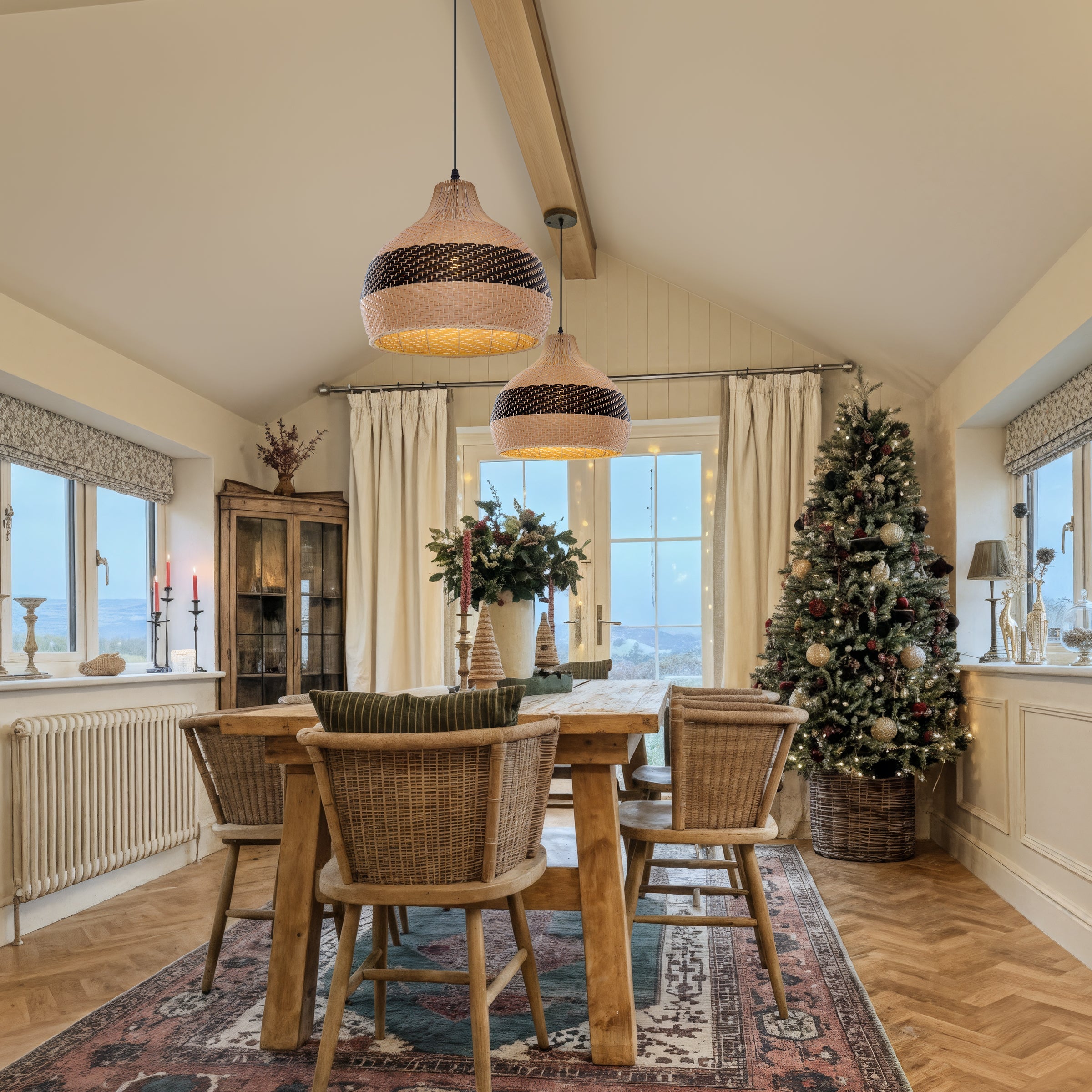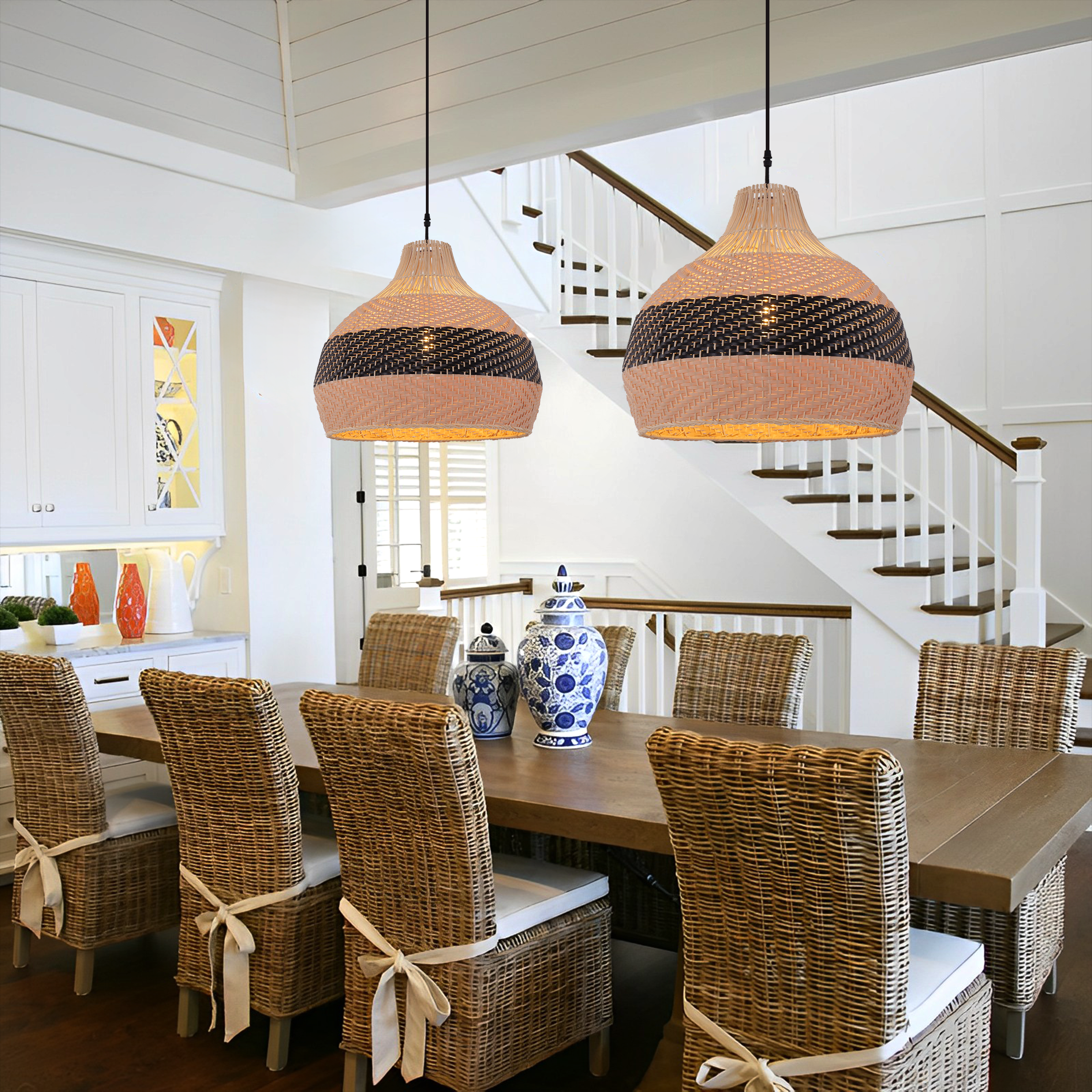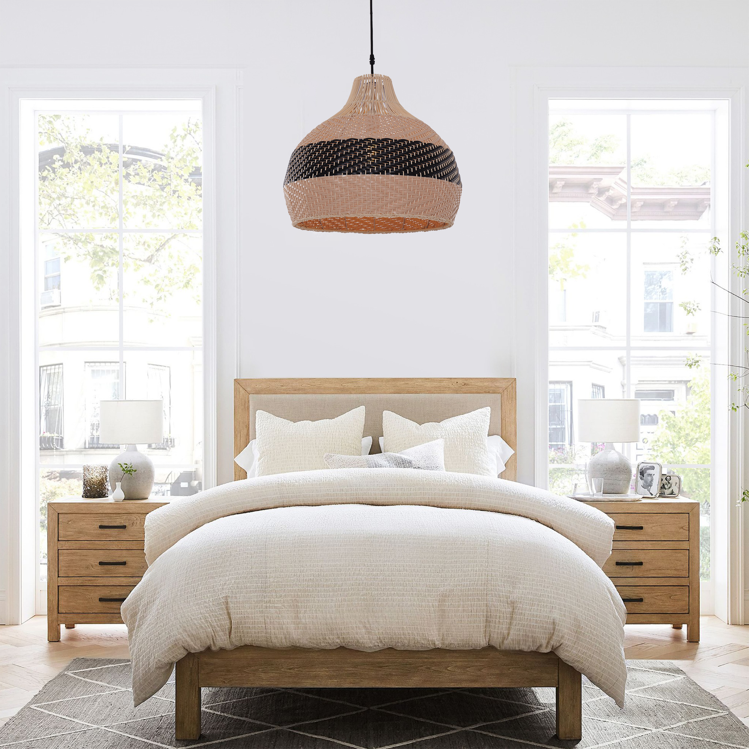 Dewlight-Handwoven Rattan Black Pendant Lamp