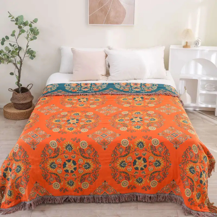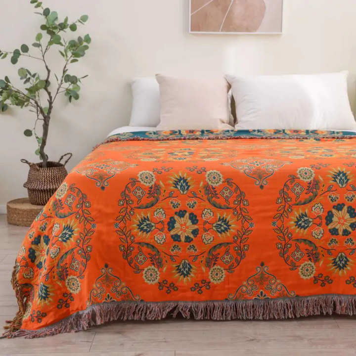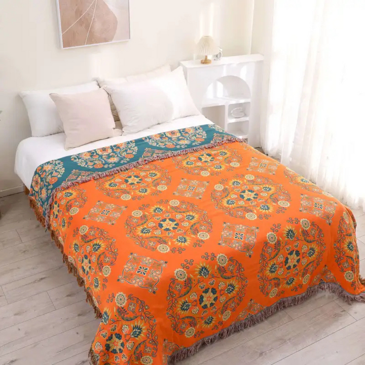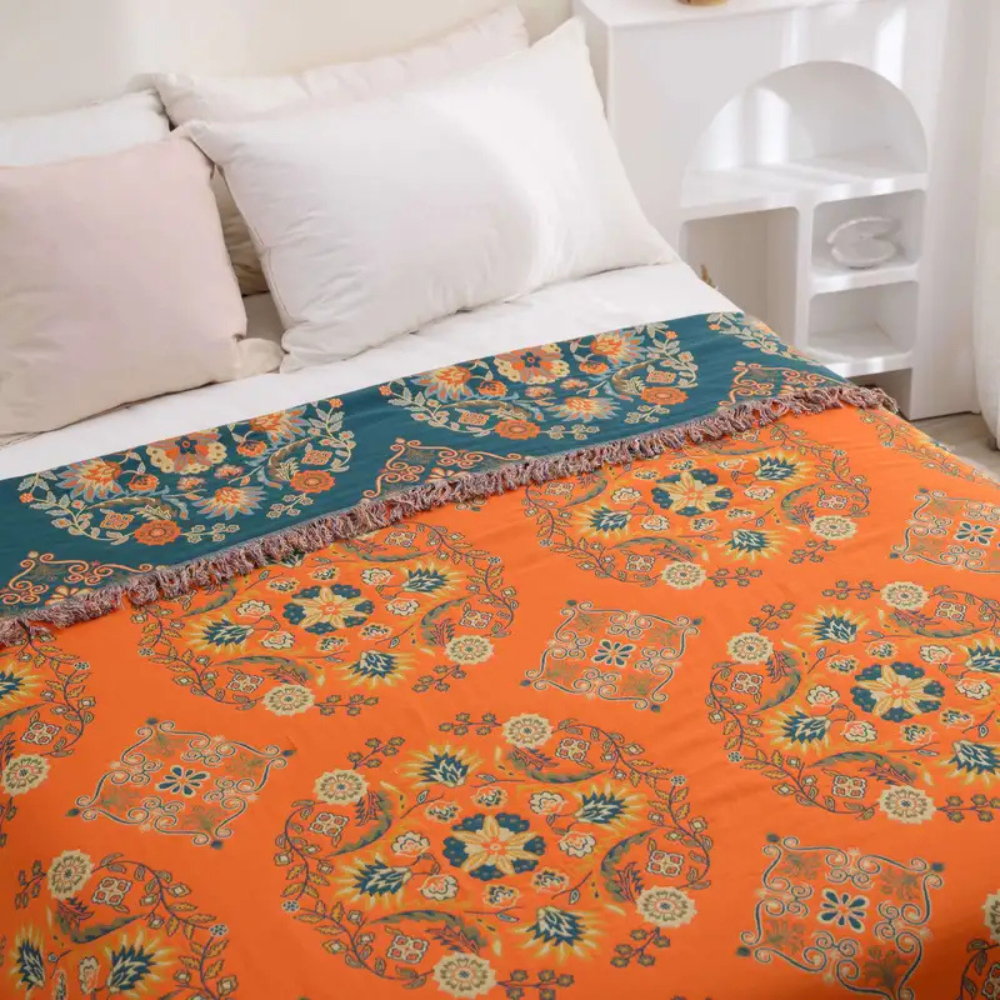 Living Room Vintage Floral Throw Blanket | Reversible Design