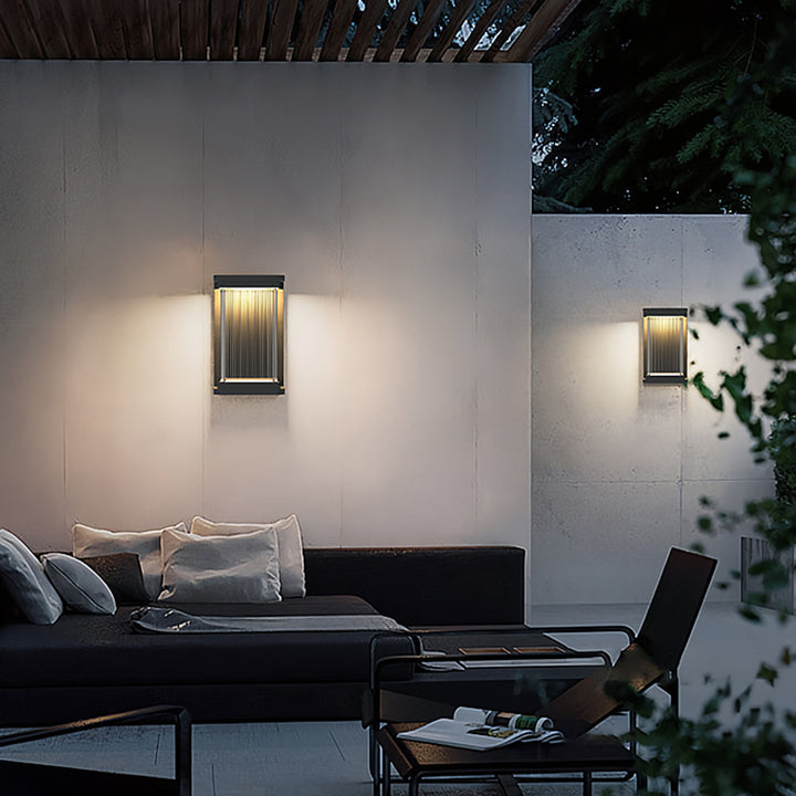 Modern Outdoor Wall Light with Ribbed Glass | Waterproof LED